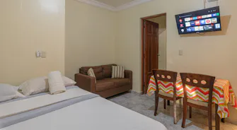 aire acondicionado, parqueo seguro con mando a distancia, closet, baño privado con agua caliente, 1 cama grande, Smart TV, Premium Wi-Fi, seguridad 24 horas, lavadora y secadora disponible